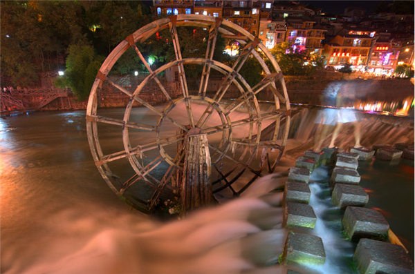 下午我们经过了约四小时便来到了凤凰古城,美美的夜景。